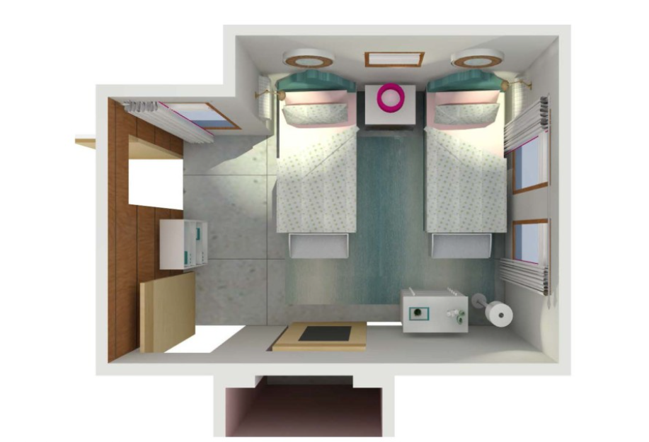 5. USE WALL SPACE WHEN FLOOR SPACE IS LIMITED. These little clients are big readers and one thing that was requested was a space for reading. Having to incorporate two of everything in the room ate up a lot of floor space and left no room for a cozy chair for reading. The solution is to go up! Using vertical wall space on each side of the bed and incorporating individually controlled reading lights paired with a metal basket creates an area where they can curl up and read and then quickly stash their book as they drift off to sleep.