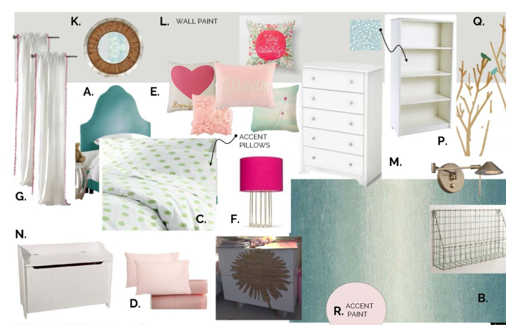 A recent client gave me the challenge of creating a soothing, eclectic, not-too-girly room for her little ladies. The space needed to have space for books and cozy places to cuddle up and read.  In order to come to a functional and pretty design solution, I used 5 key strategies that could be applied to any shared place.