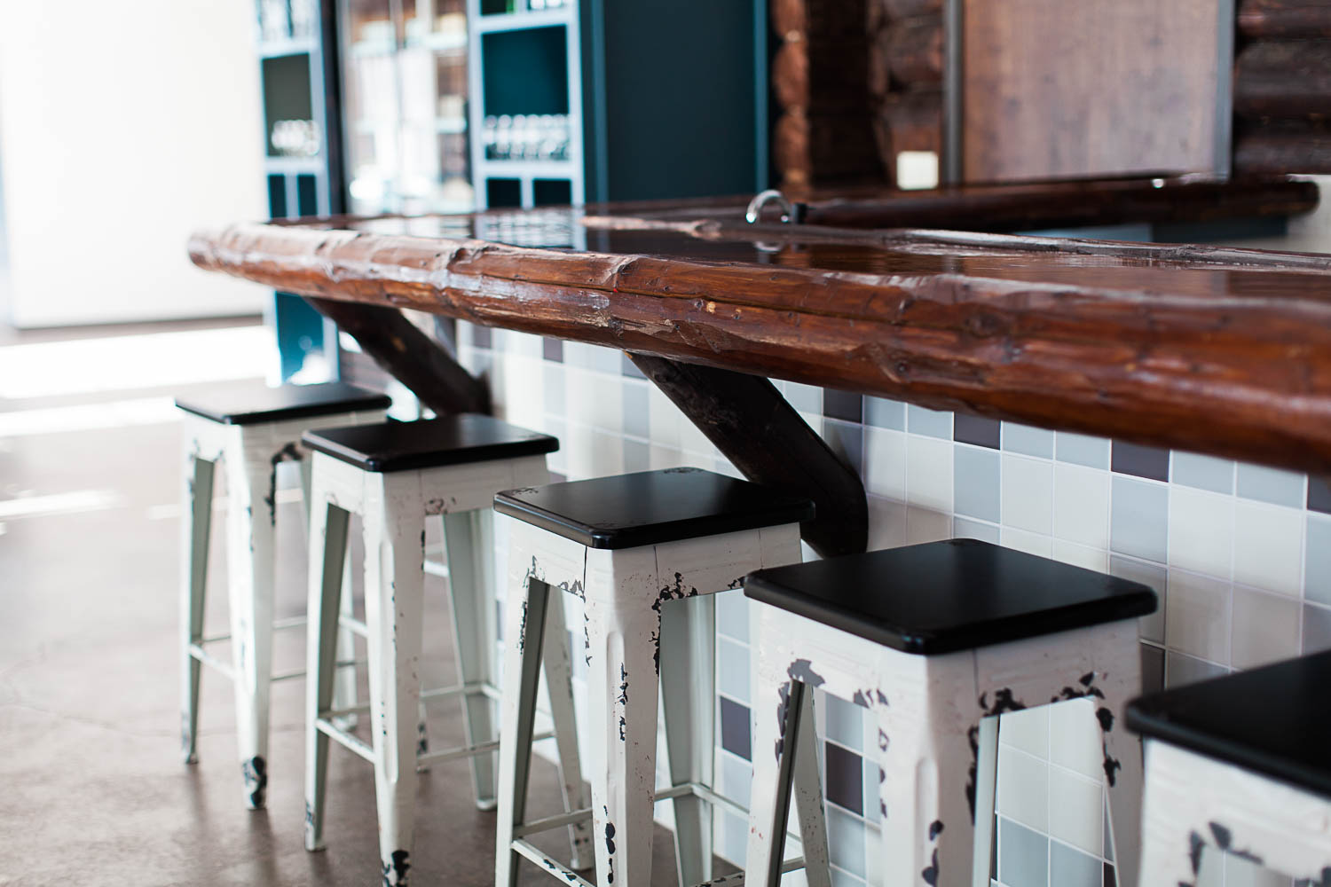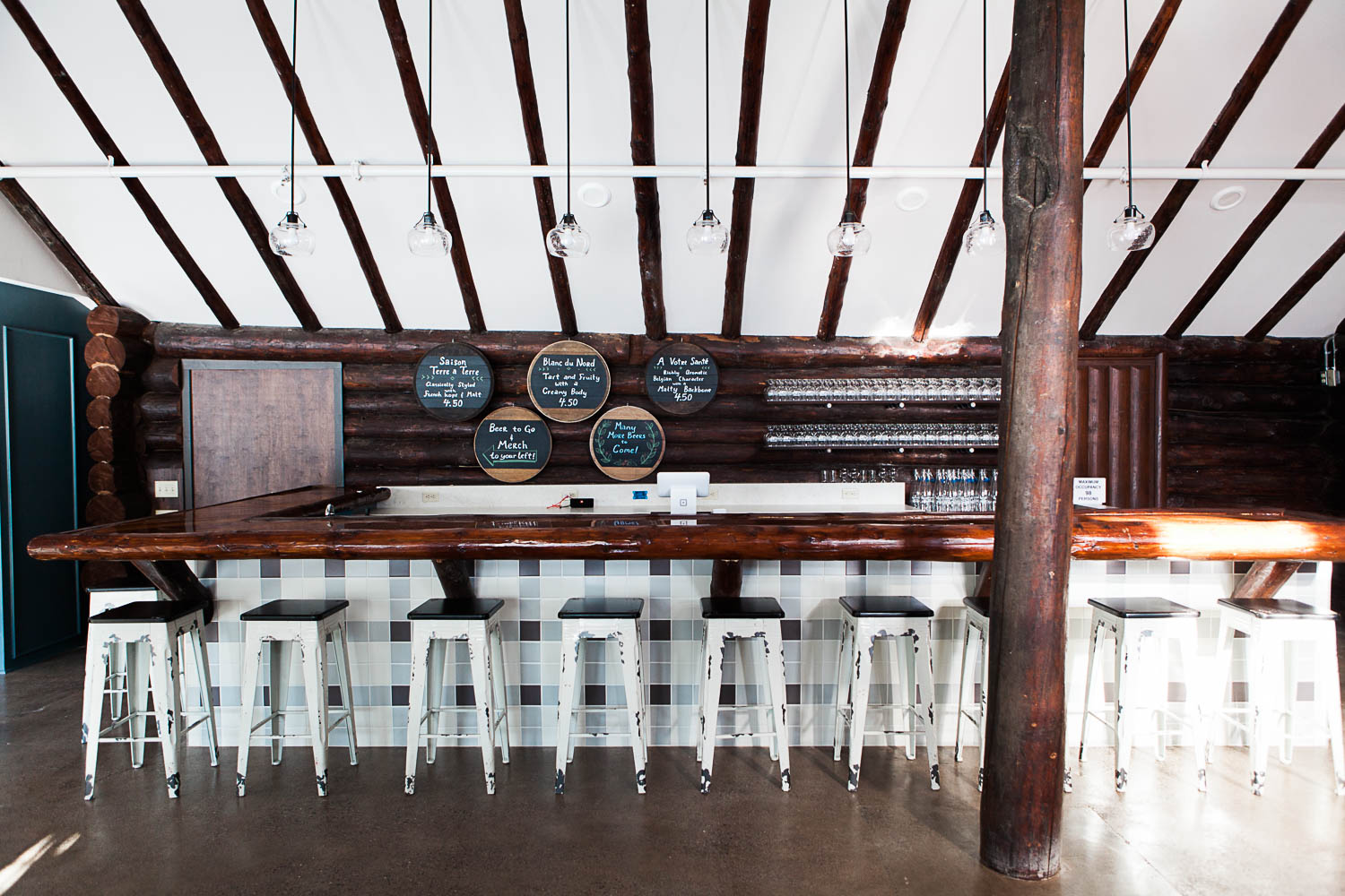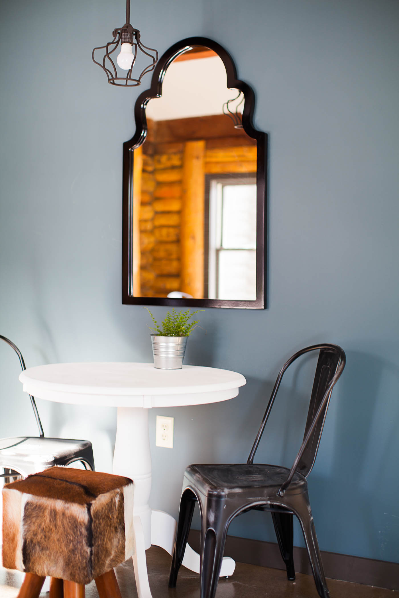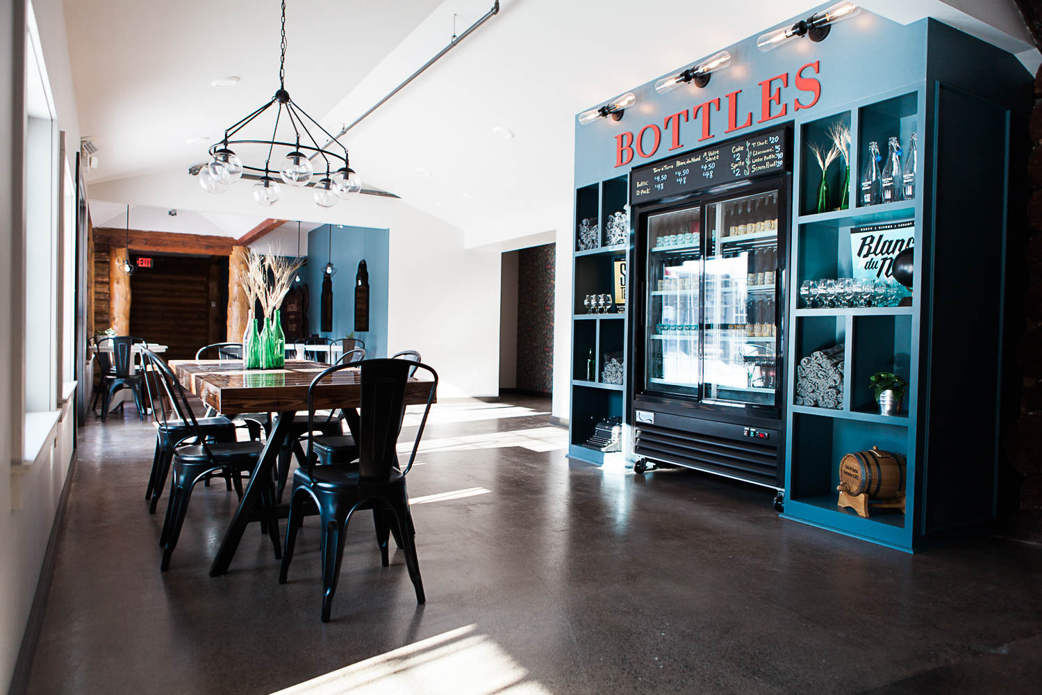 Converting and adapting an old building into something completely new often means some funky or chopped up floor plans. In order to make this feel intentional, and like the electic cabin vibe we were going for, we used a variety of seating areas. There are intimate and cozy spots for 2, large tables for groups, and clusters of tables to encourage community and conversation.