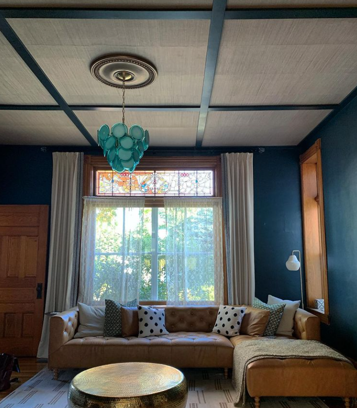 Adding ceiling detail to old homes can have an added bonus. In addition to a luxe feeling detail that is appropriate to the period this house was built, we covered existing cracks in the plaster in a more affordable way with this covering.