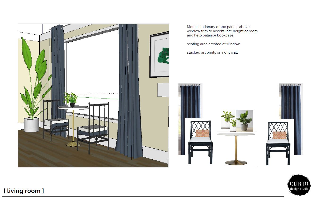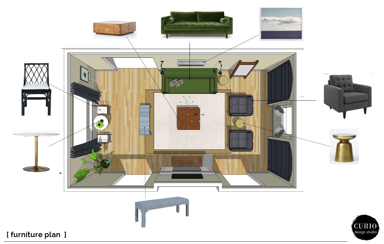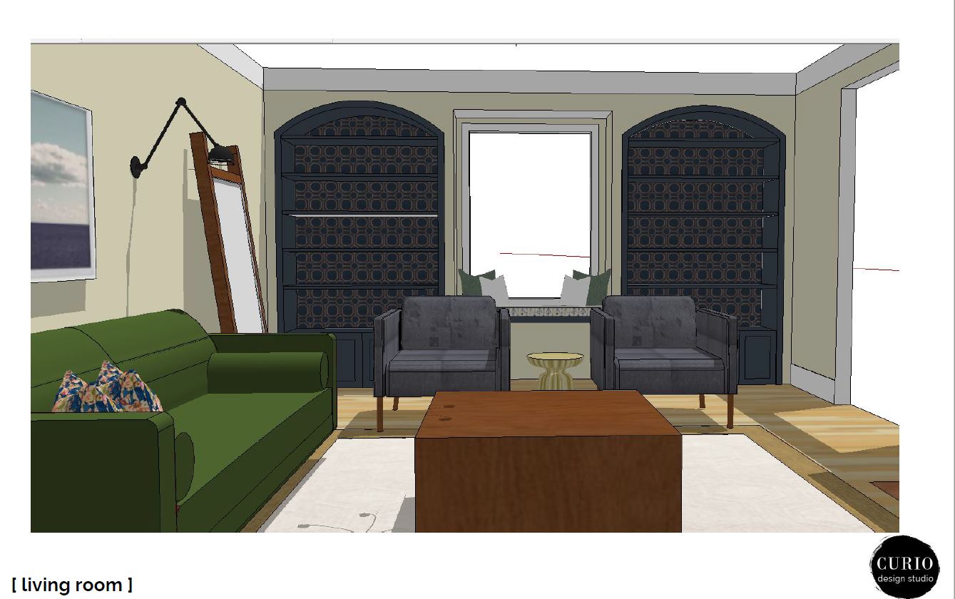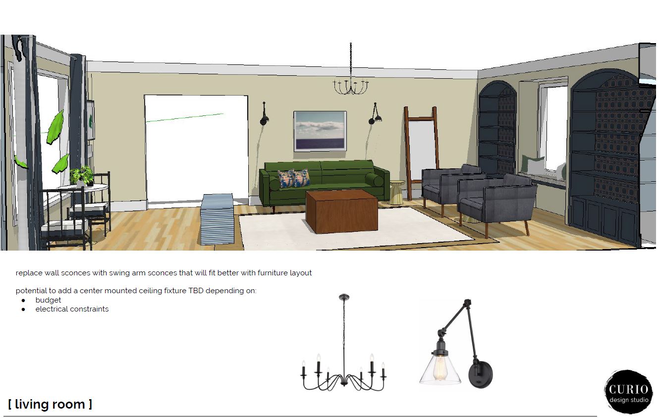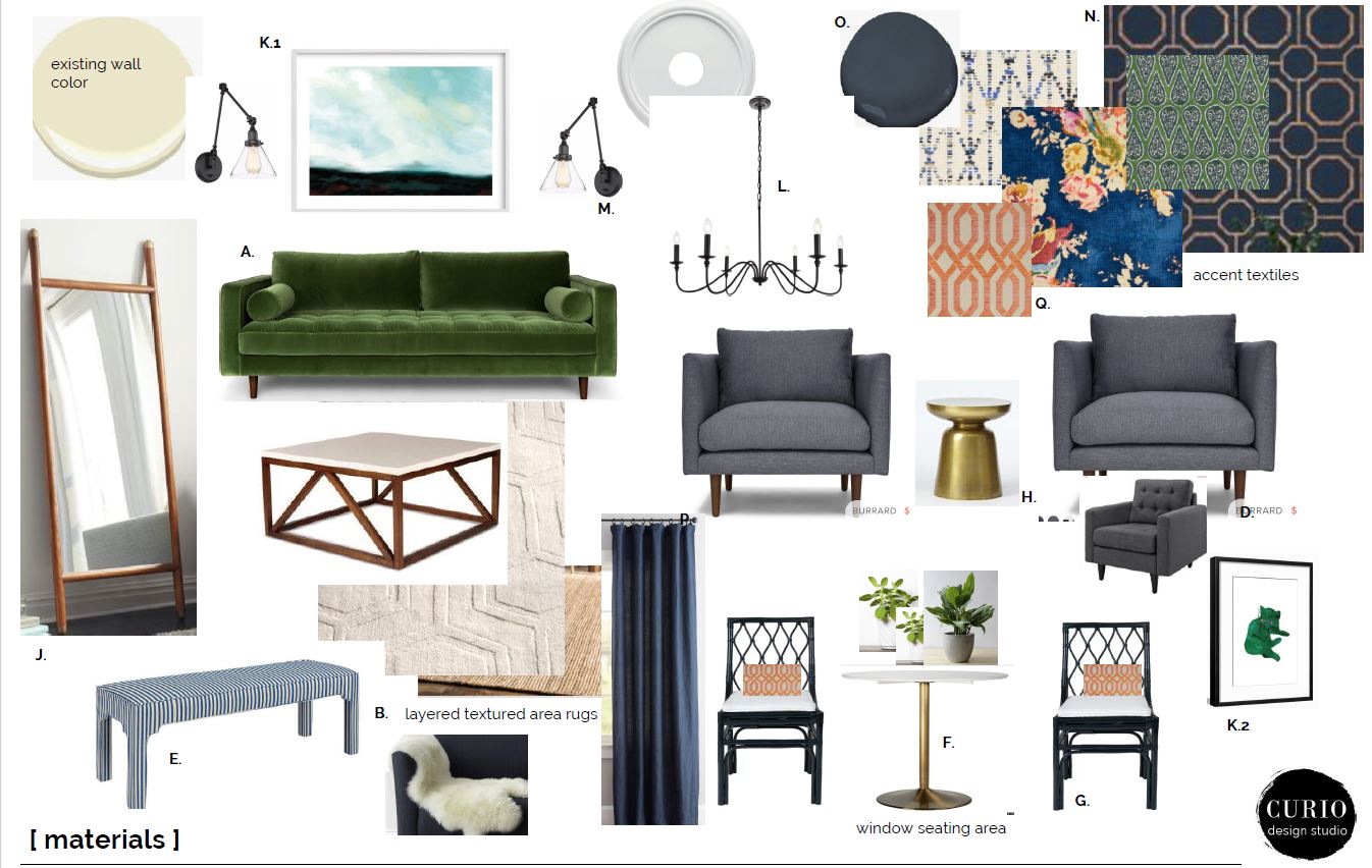 Whenever we get a client who is not afraid of color, we run with it! This Marquette eastside living room was no exception! The client wanted fun, color and hints of mid century, while still fitting into the old bones of the house. Check out the design plan we put together for the Eastside Jewel Tone!