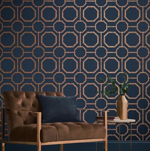 That is what we did with this amazing navy wallpaper from Graham and Brown. More traditional pattern + oversize scale = a great fit for a modern space in a historical home!