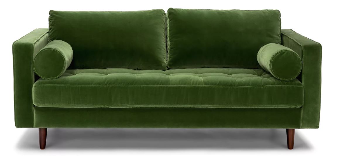 The Sven Velvet sofa in grass green was a huge focal point to the design plan.