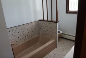 First, we moved the entry door. Previously it was centered on the wall and opened up right into the shower, leaving a dead space behind the door. We moved it so it was tucked directly against the wall when it opened, allowing for better flow in and out of the bathroom.
