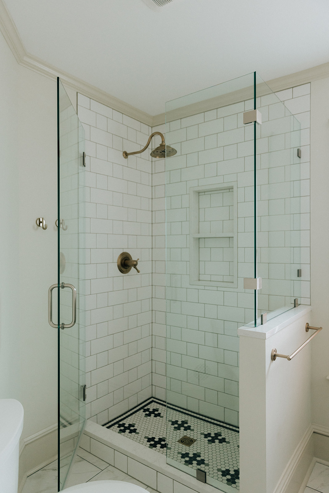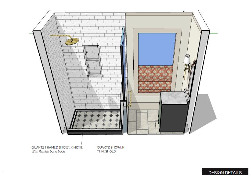 The bathroom included a few minor layout adjustments– flipping the door swing so it doesn’t eat up space in the bathroom, and swapping out the full height shower wall for a partial wall with glass. This allowed for more light in the shower as well as better air flow!