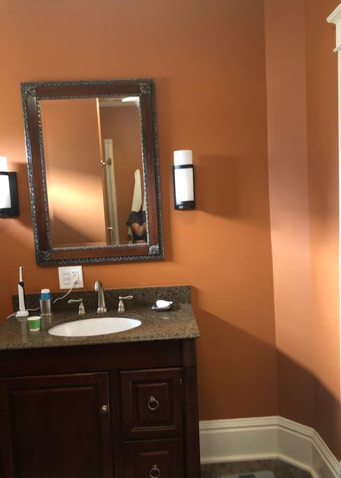 The bathroom space was a bit less lovely. It felt really dark and cramped– and not to mention had an issue with ventilation & heat that needed to be remedied.