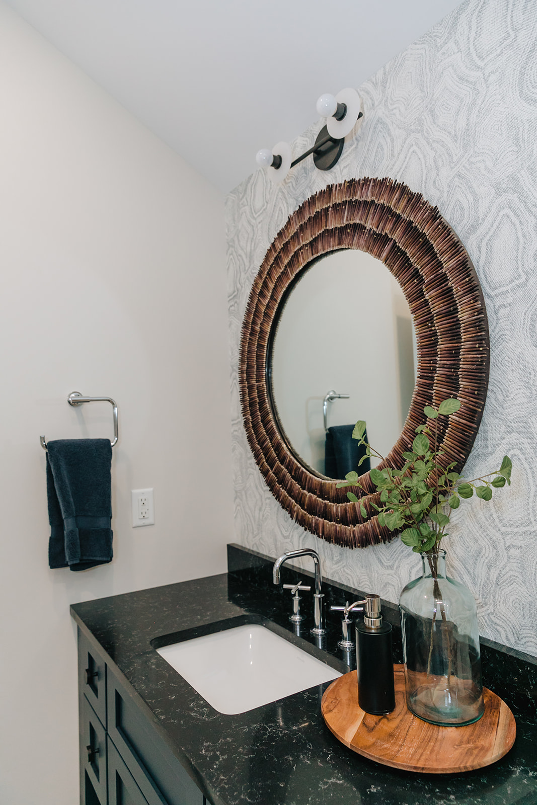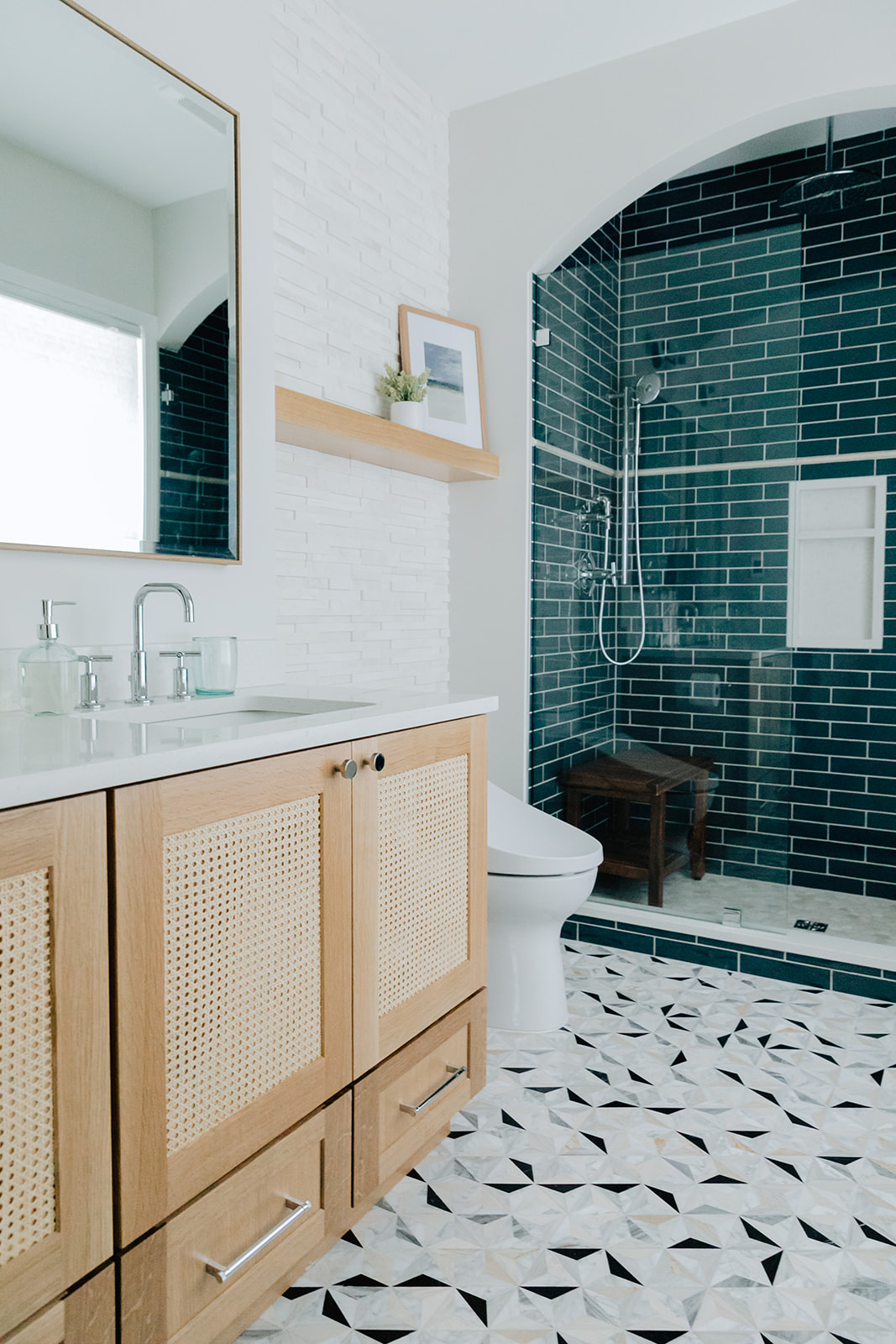 This reveal has been long awaited and we are so excited to share it with you. The overall project consisted of 2 full bathrooms, 1 powder room a kitchen and furnishing 2 bedrooms, and the living and dining room. The entire process felt like a dream. Creative freedom and a great client open to amazing textures and products. The end result is a sampling of both my design vision and Ryan’s amazing skills for execution.