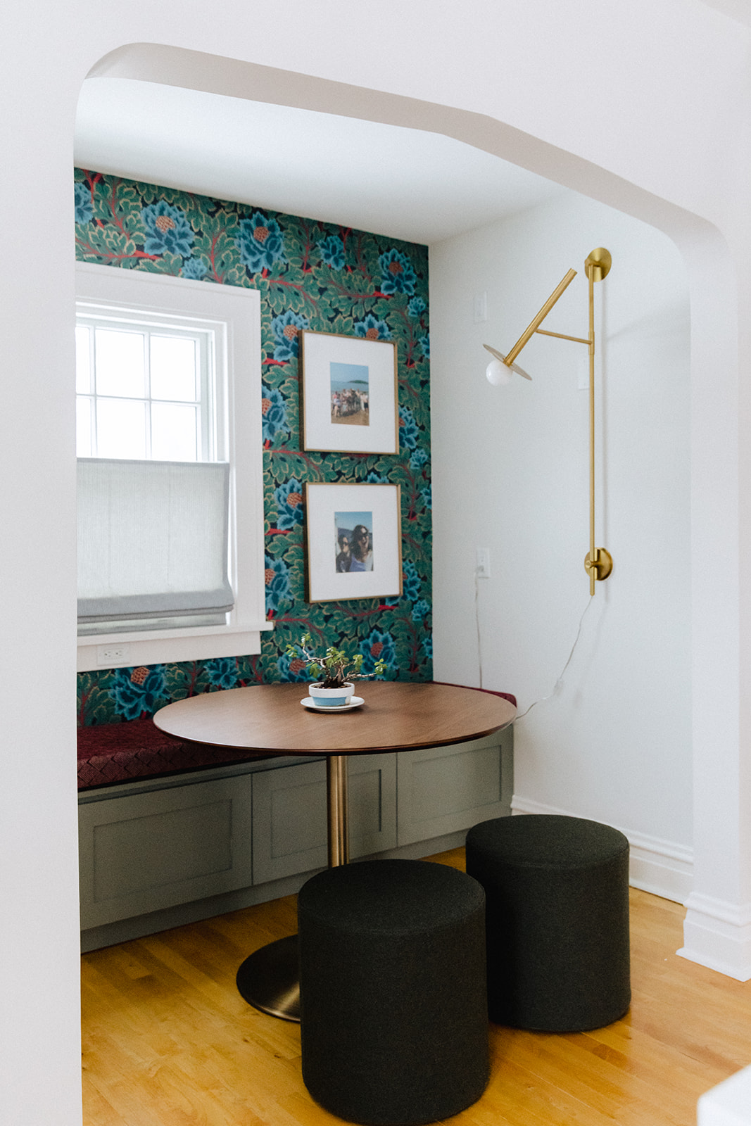 Dark, dimly lit but tons of potential. We love a good breakfast nook so we knew we had to start there and build out an amazing design from there.
