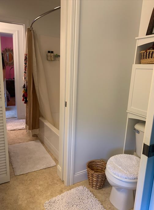 This space was pretty builder-basic.  A standard condo bathroom which was suitable for the needs of the client but DEFINITELY did not showcase their unique personality and personal style. Our client was a self described boho-antique-loving lady who loved mixing different elements to come up with a truly unique space. The rest of the their condo was colorful, layered with texture and overflowing with personality. We needed to make this bathroom match.
