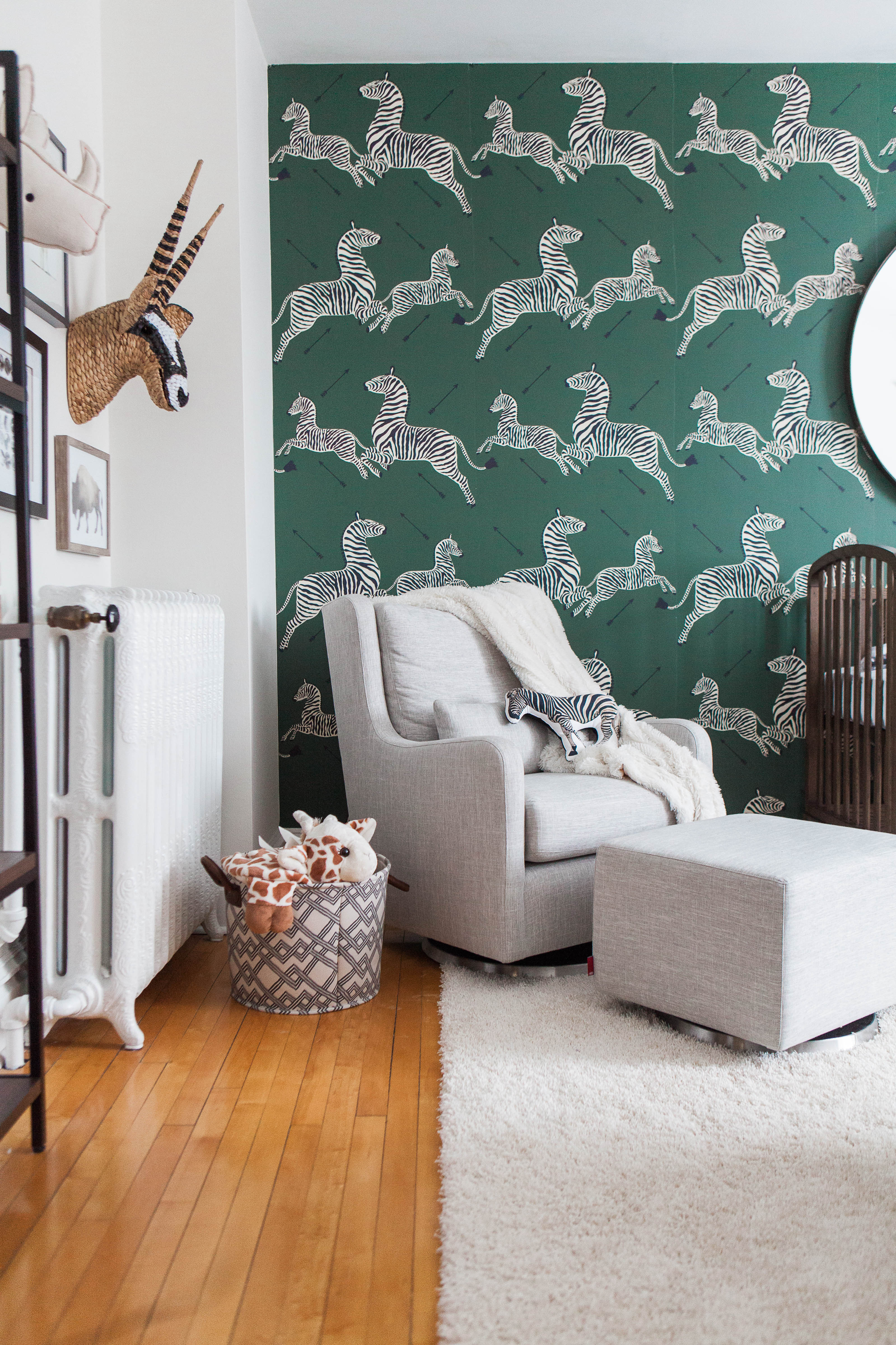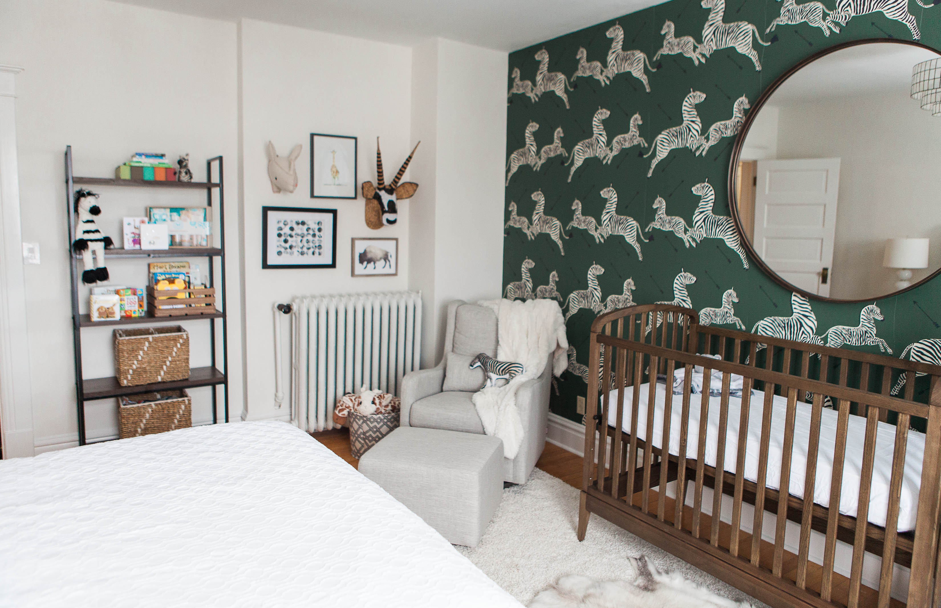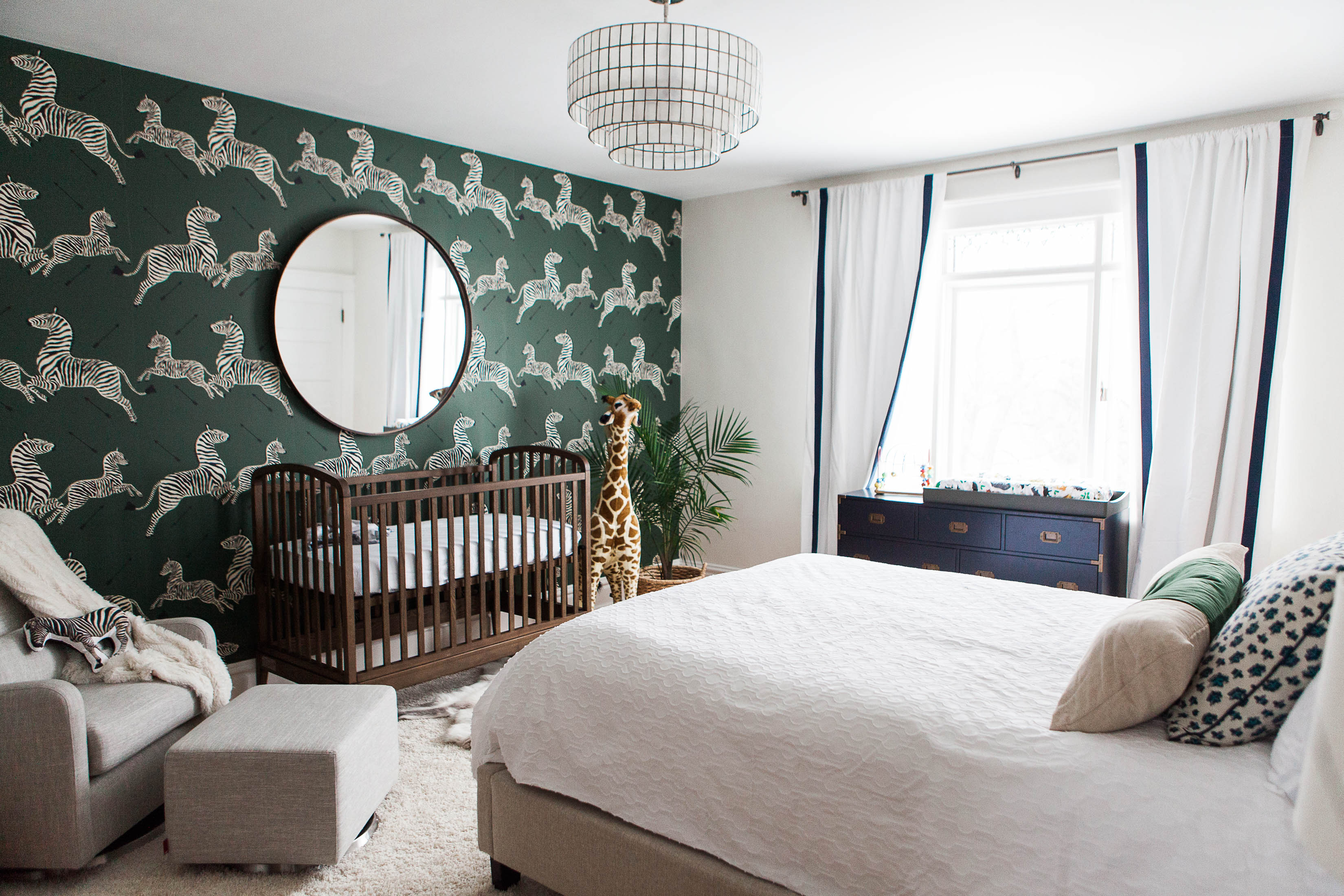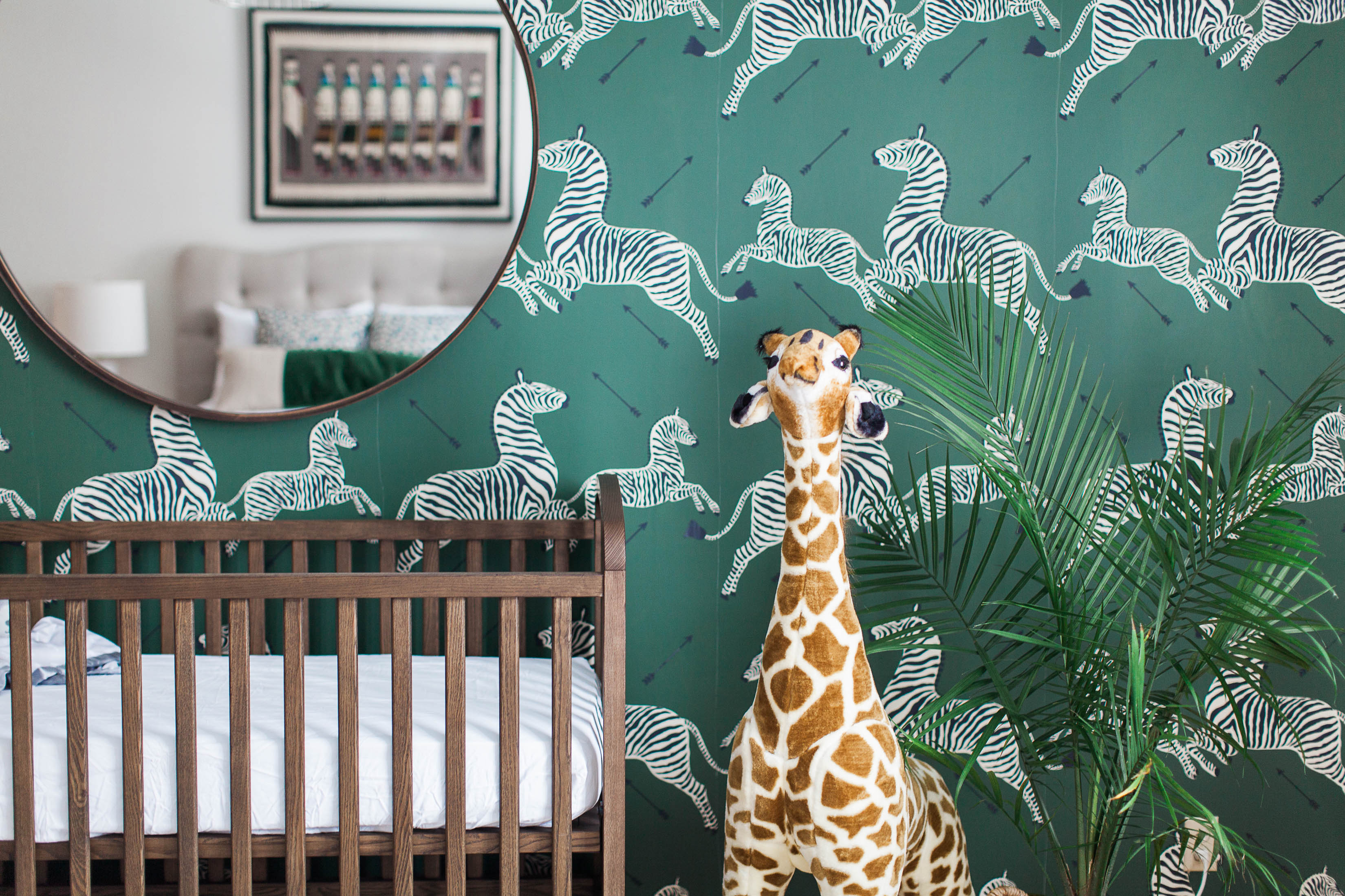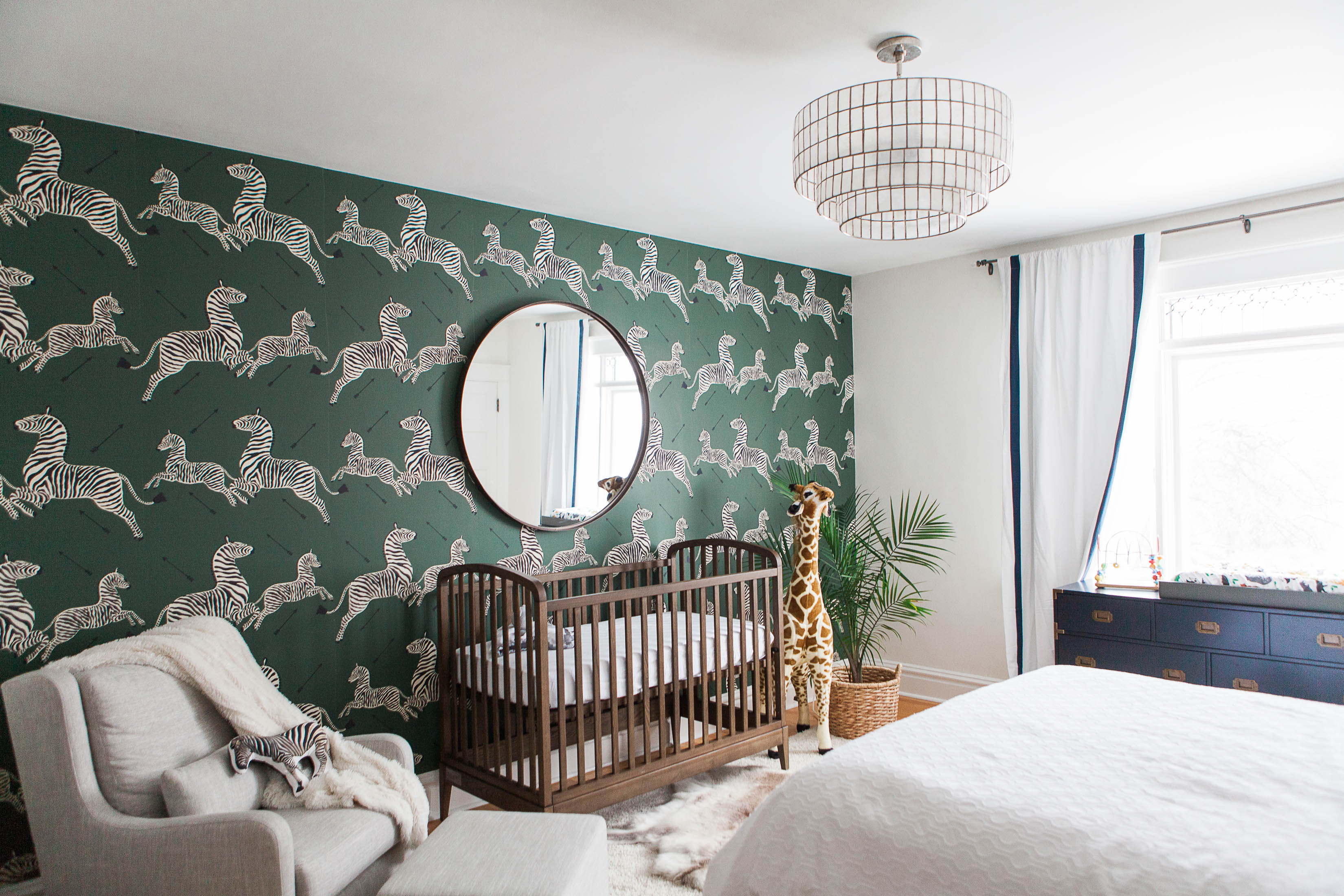 Nothing like seeing all the planning and hard work come together in an amazing project reveal. This Safari inspired nursery was no different. Usually the after images take my breath away, But these knocked the wind right out of me. It probably has something (everything) to do with the large scale zebra wallpaper. If you haven’t already jump over to the design plan post and see how this Single Room Fix package came together.