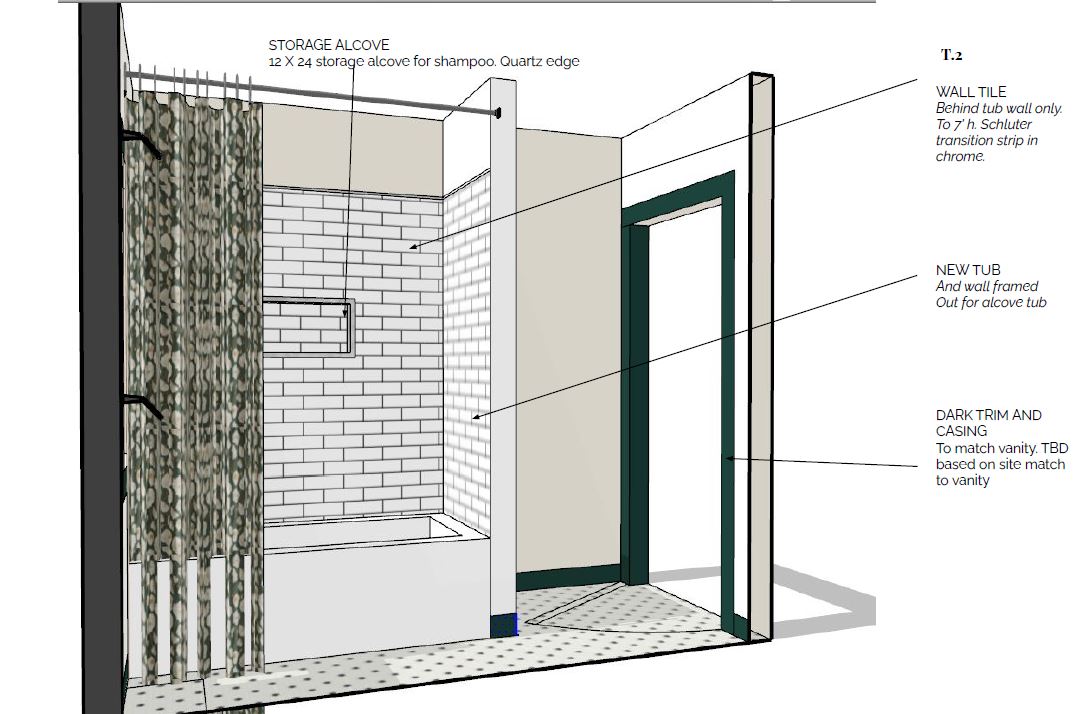 The main issue with this project was carving out more functional square footage for this high-use family bath. The existing bathroom included the original claw foot tub ( beautiful–yes , practical for daily showering–not so much.). Our main goals : more elbow room for growing fam + more storage.
