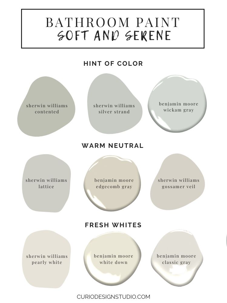 Don’t get us wrong, it’s a nice color. But we are evolving! And so are our paint choices. Here is our round-up of just as reliable but oh-so-updated colors for a soft, serene bathroom vibe.