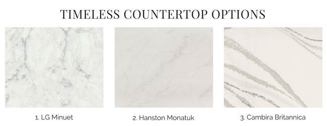 Countertops and tile are expensive (and time-consuming!) to replace. Subway tile and natural stone look quartz are great selections for creating a time-tested look in your kitchen and bath.