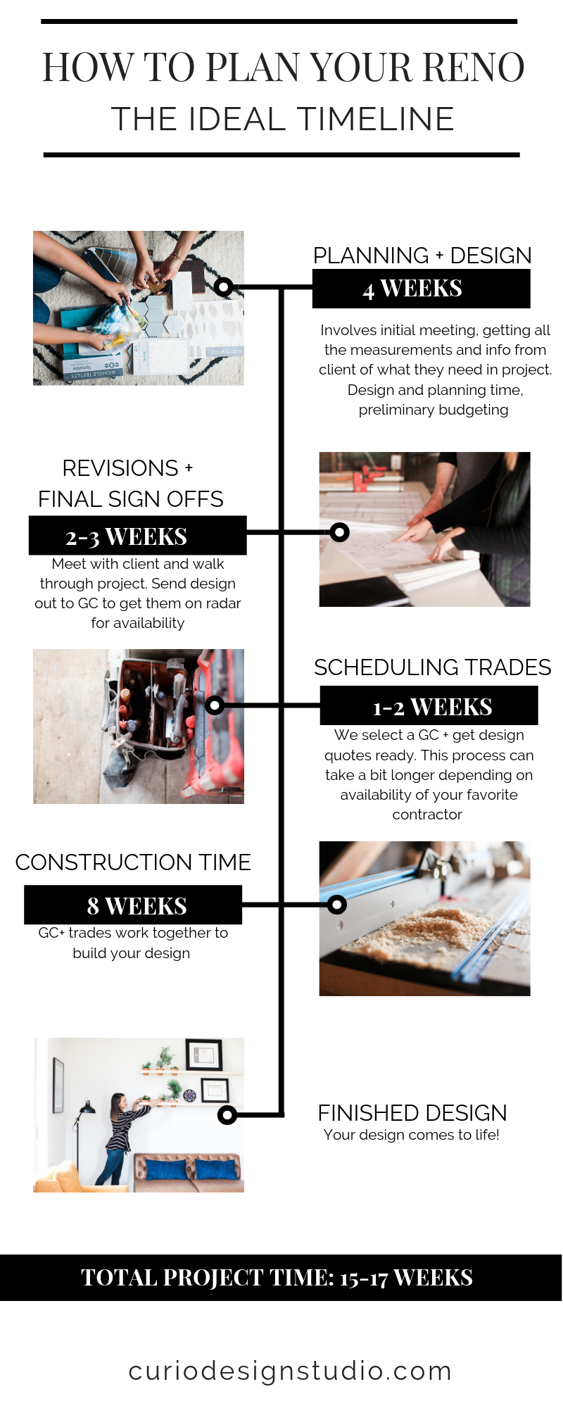 Total time frame for DESIGN + Construction: 15-17 weeks